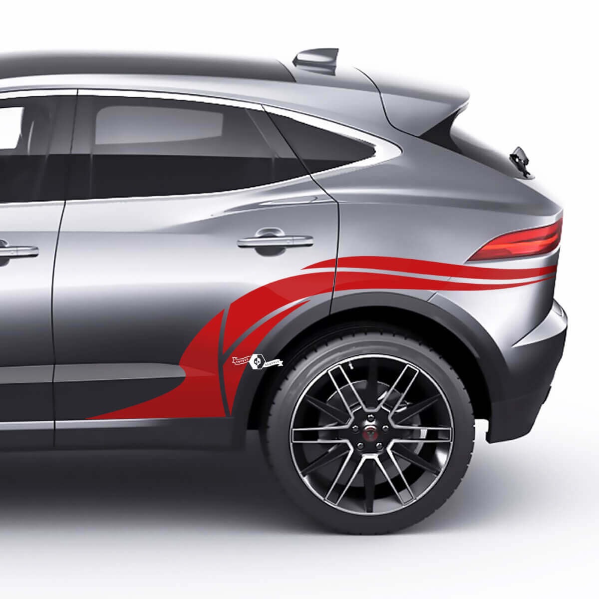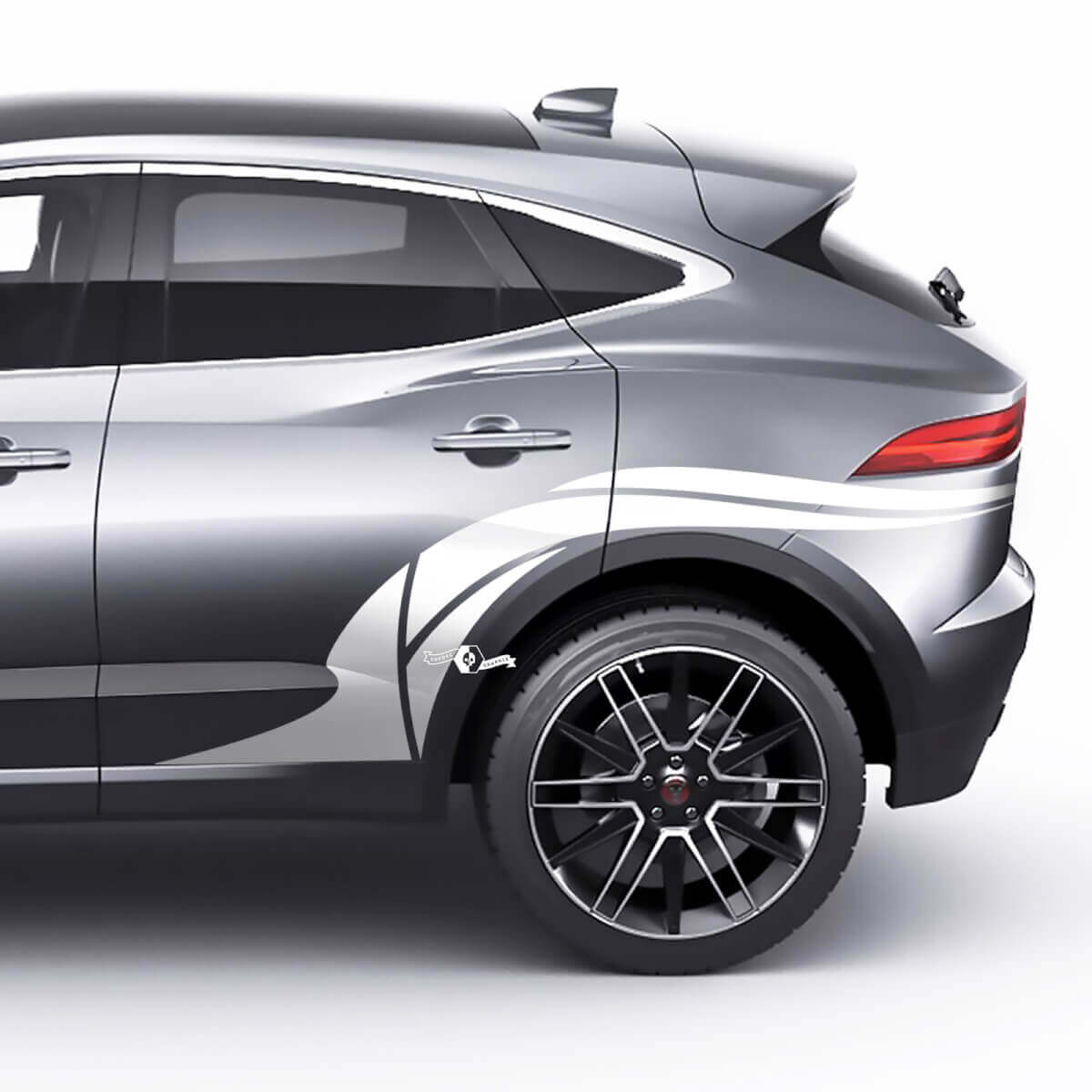 Upgrade your Jaguar E-Pace with our rear wheel arch graphics decal, designed to perfectly fit and enhance the look of your vehicle's rear wheel area.