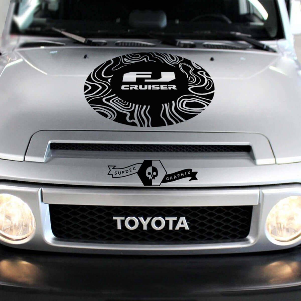 Enhance your Toyota FJ Cruiser's look with this unique Contour Map Bonnet Decal Sticker. Made from high-quality vinyl, it adds a rugged, adventurous touch to your vehicle, perfect for off-road lovers and explorers.