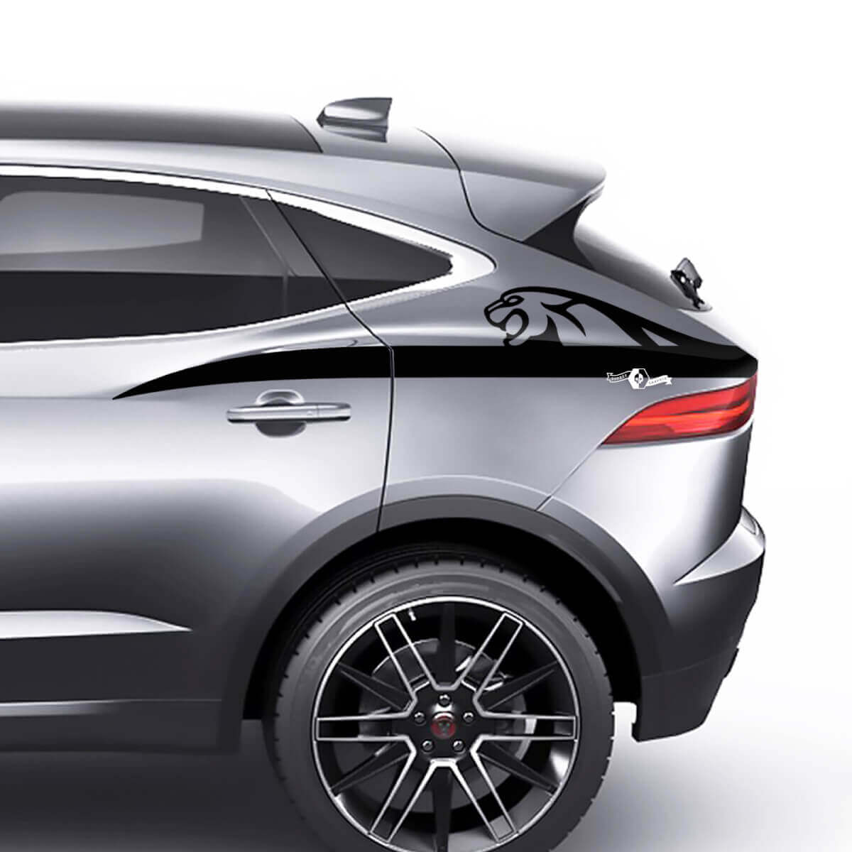 Upgrade your Jaguar E-Pace with these stylish rear side logo stripes decals. Designed to perfectly fit and highlight the sporty look of your vehicle, these vinyl stickers add a sharp and dynamic edge.