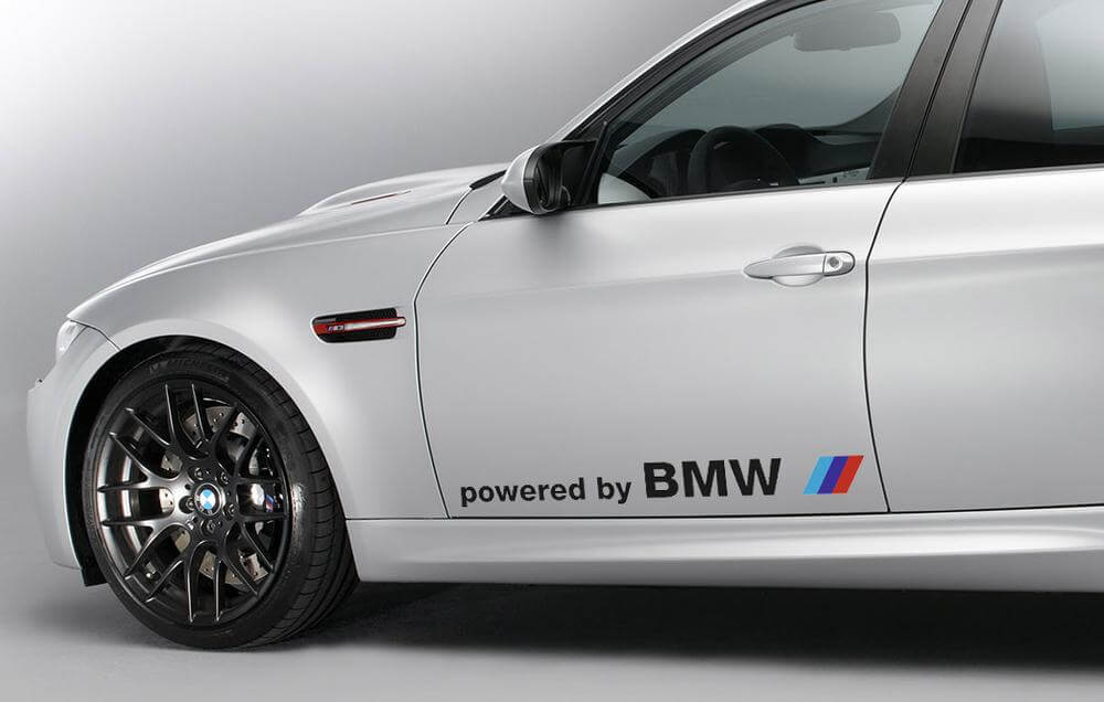 Transform your BMW with our pair of BMW stickers, each decorated with the slogan Powered by BMW along with the BMW logo.