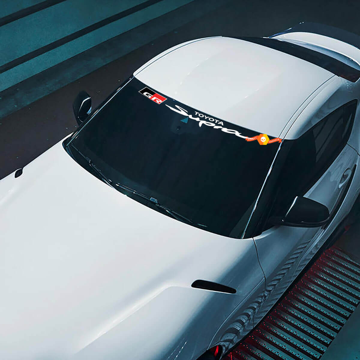 Upgrade your Toyota Supra GR MKV A90 or A91 with our custom windscreen graphics decals. Designed to perfectly fit your Supra, these high-quality vinyl stickers offer a sleek and sporty look that stands out on the road.