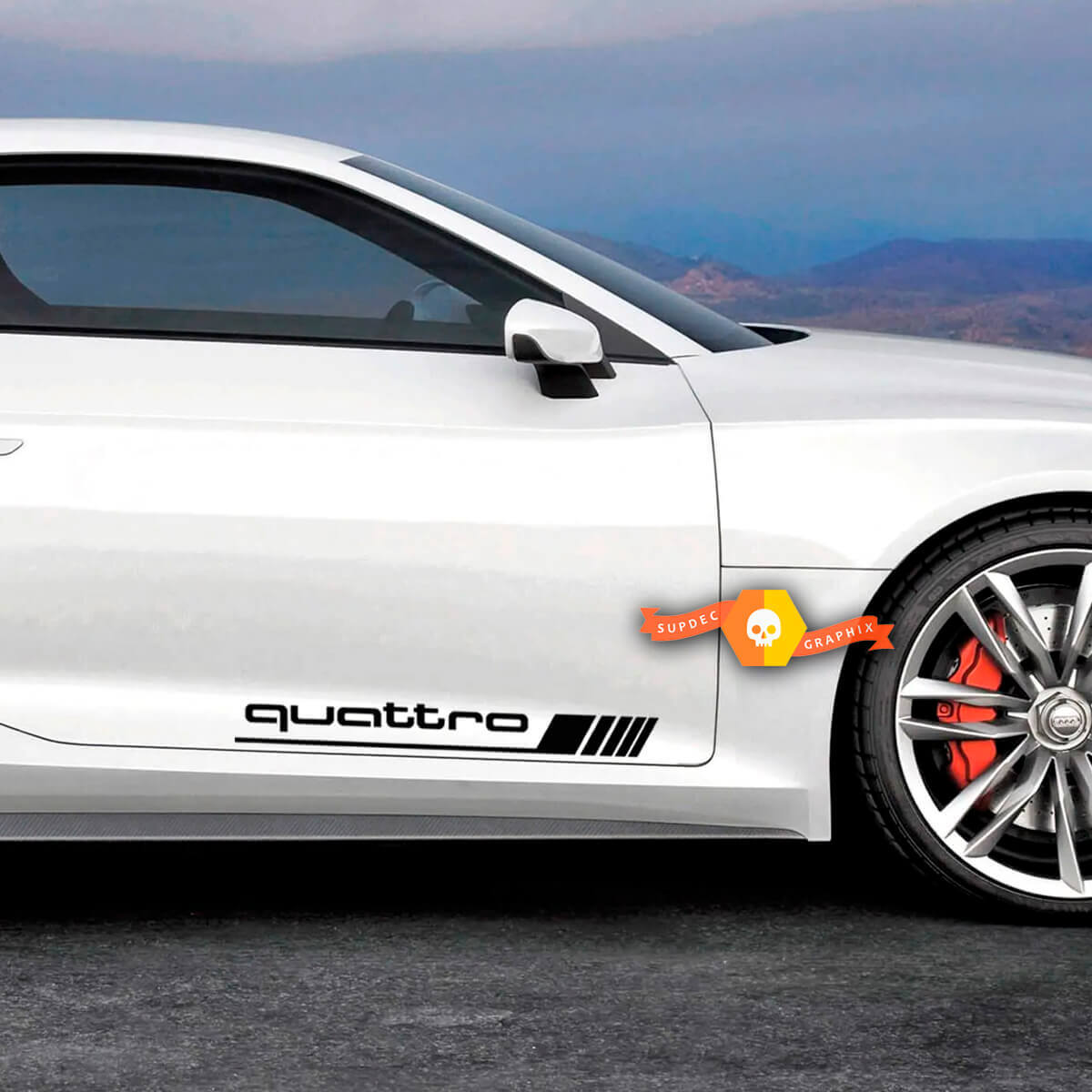 Upgrade your Audi's style with this Pair Audi Quattro Decal Logo Doors set. These high-quality vinyl stickers are designed to fit perfectly on your car doors, giving your vehicle a sleek and sporty look.