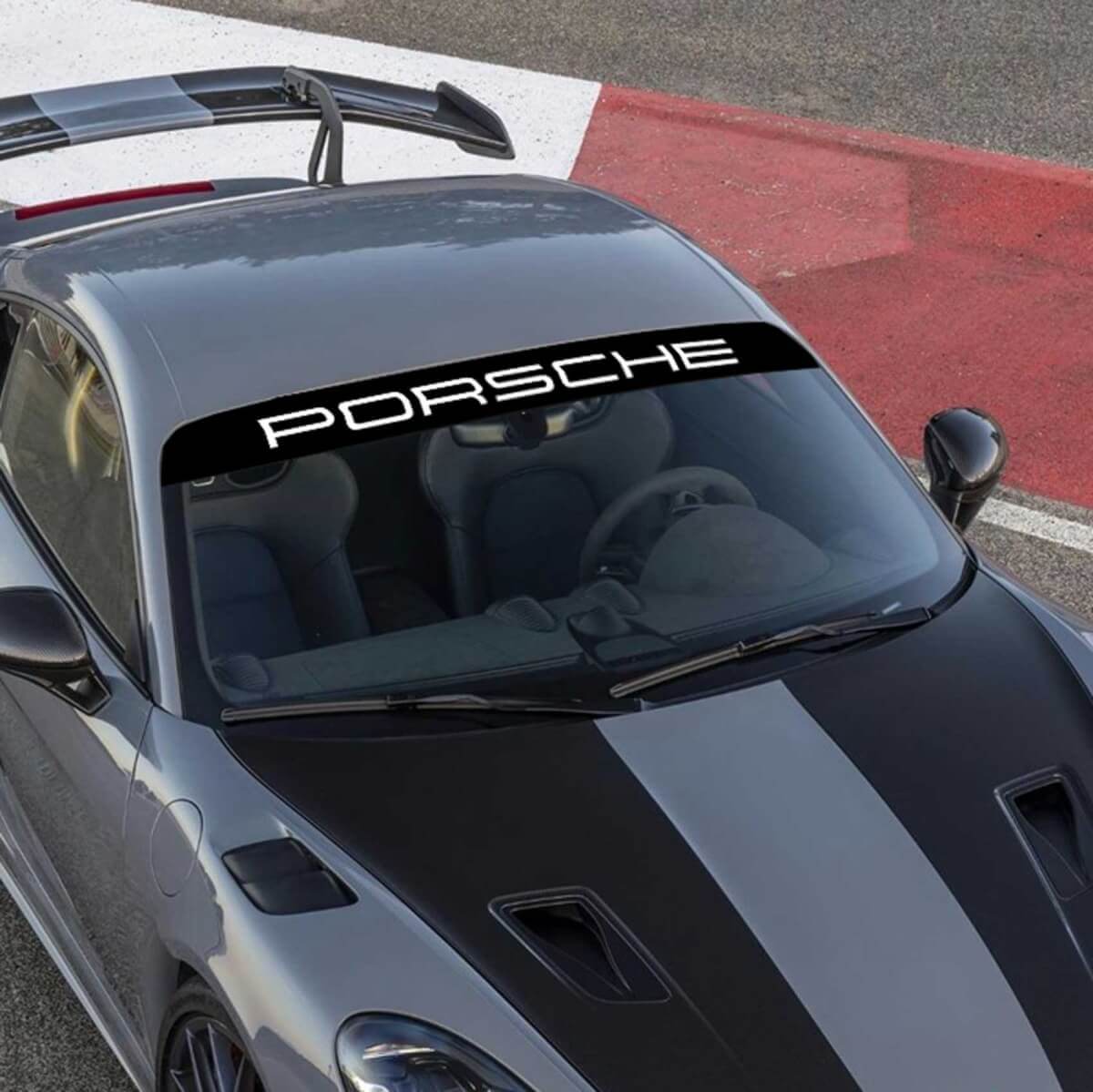 Upgrade your vehicle's look with our Porsche Logo Windscreen Decal with Background Stripes Kit. Designed to fit perfectly on your windscreen, this high-quality vinyl decal adds a sleek and sporty touch to your Porsche or any compatible car.