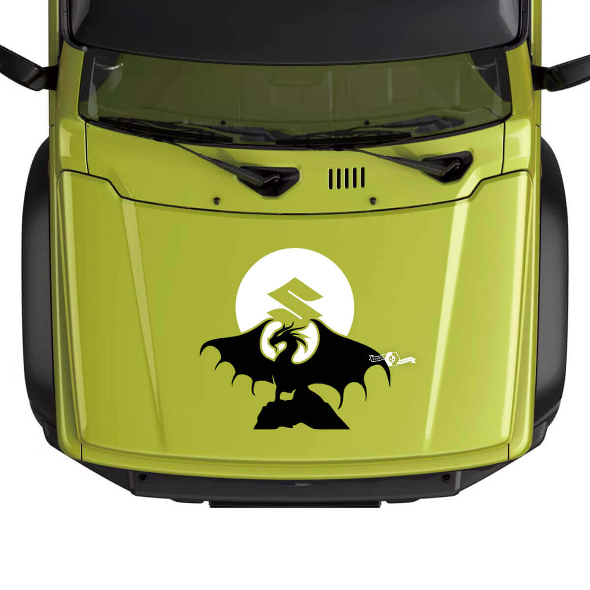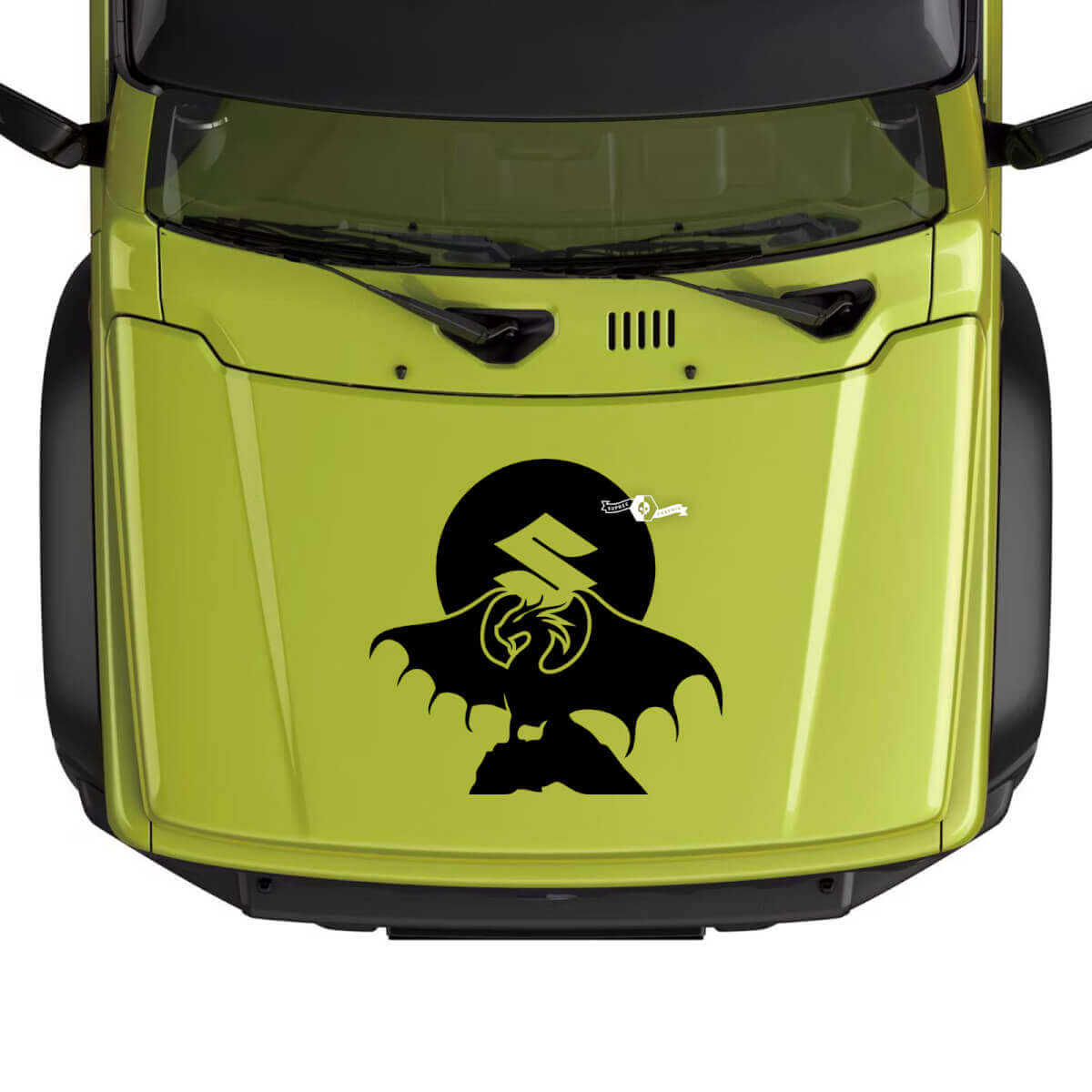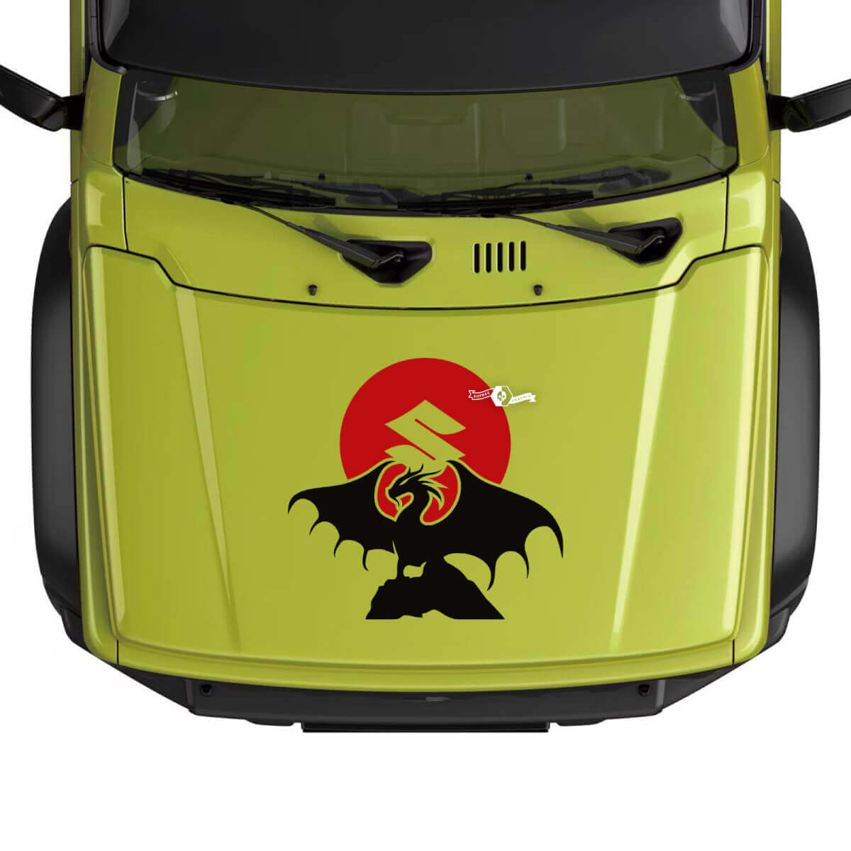 Upgrade your Suzuki JIMNY with the dynamic Bonnet Dragon on Sun Logo decal sticker graphics. This high-quality vinyl decal is designed to add a bold and unique look to your vehicle's bonnet.