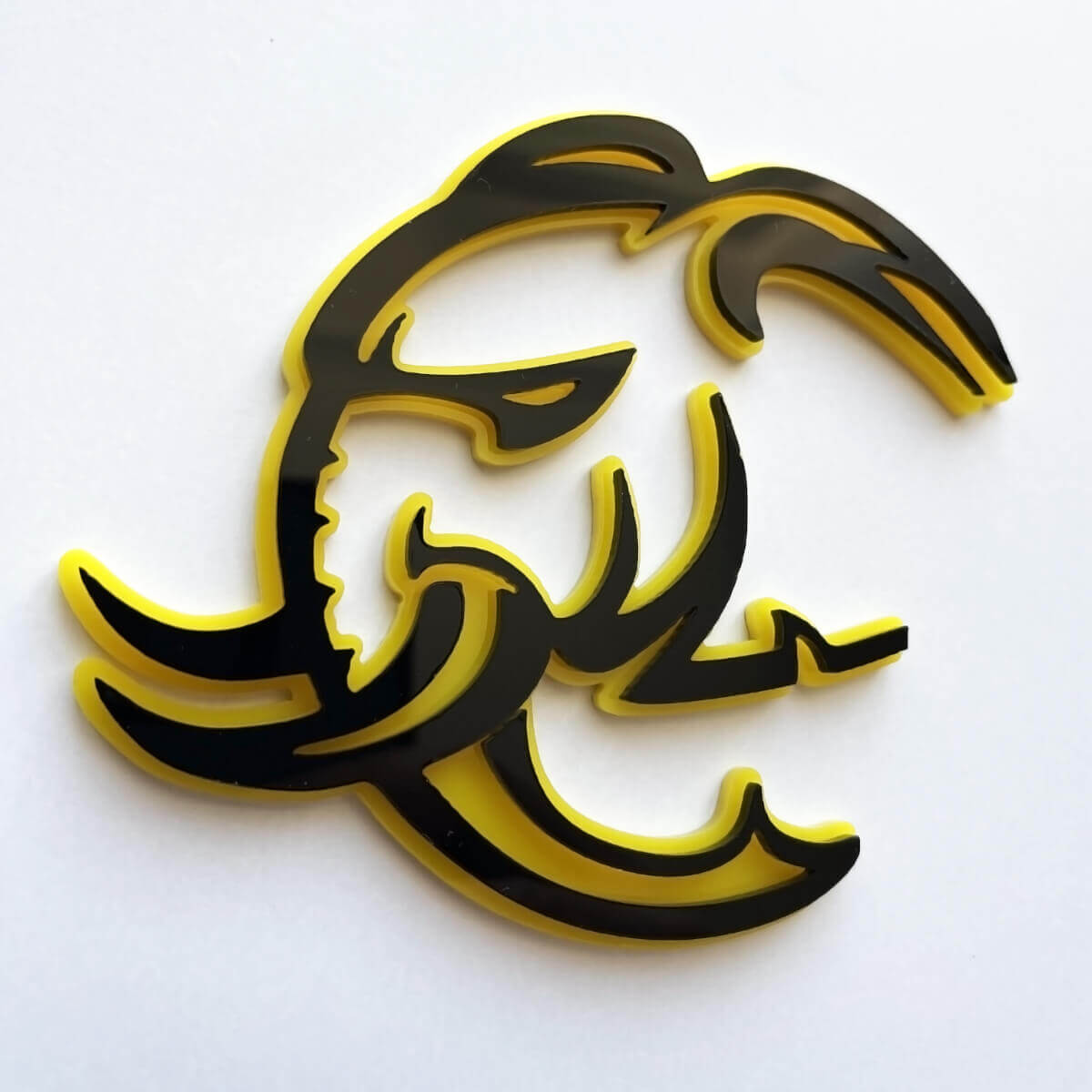 Upgrade your vehicle's look with the bold HellElephant 3D Badge Black vs Yellow Fender Badges Emblem. This eye-catching decal adds a striking contrast of black and yellow, making it perfect for showcasing your style.