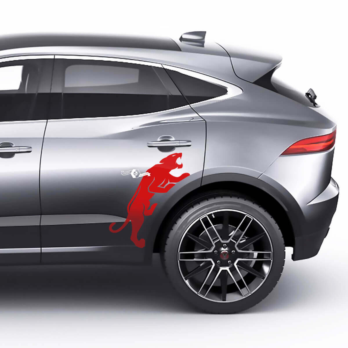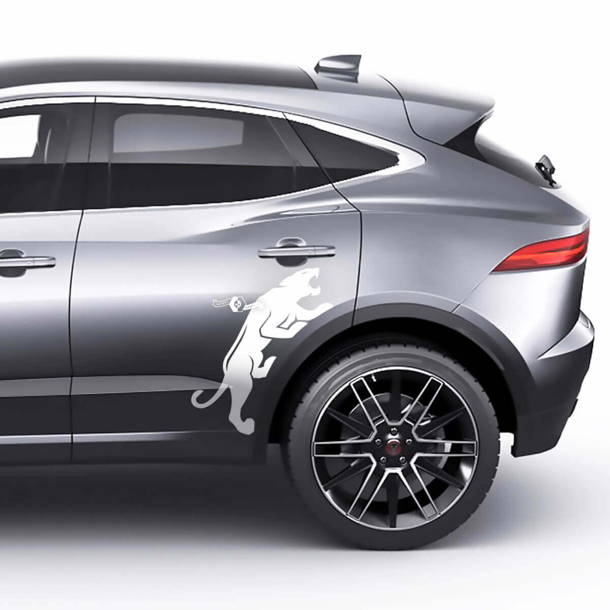 Elevate your Jaguar's style with our Rear Side Wheel Arch Graphics decal sticker. Designed to perfectly fit the wheel arch area, this high-quality vinyl decal adds a sleek and sporty look to your vehicle.