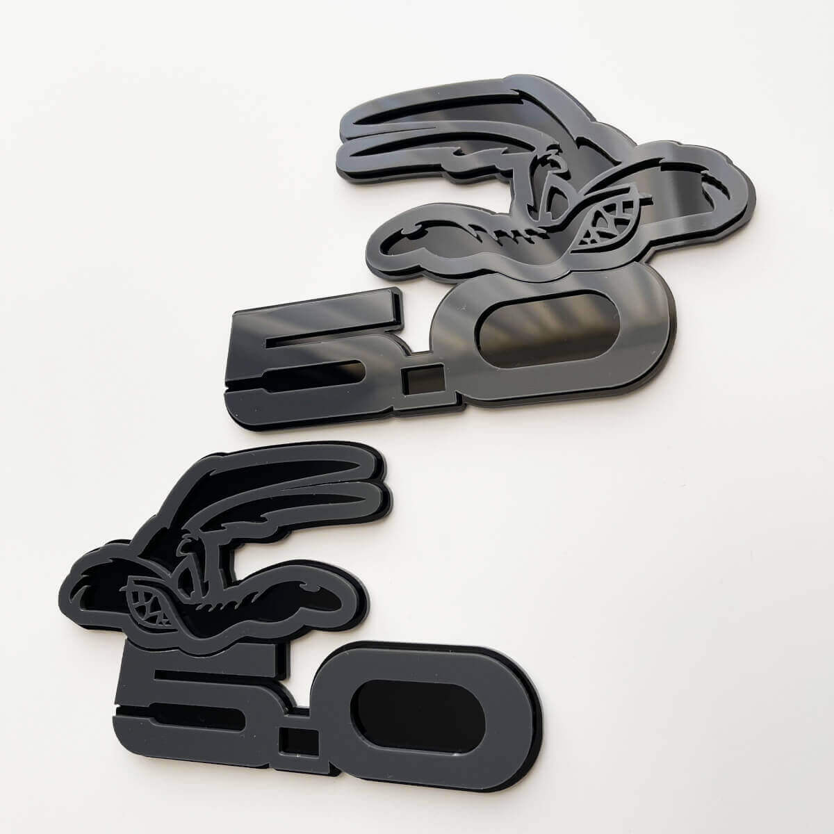 Enhance your vehicle’s style with the COYOTE 5.0 Fender Badges Emblem 3D Badge in striking black vs grey. Designed specifically for car enthusiasts who want to add a sleek, modern look to their Musclecarmodel or any compatible model, this emblem offers a dynamic contrast with a premium 3D effect.