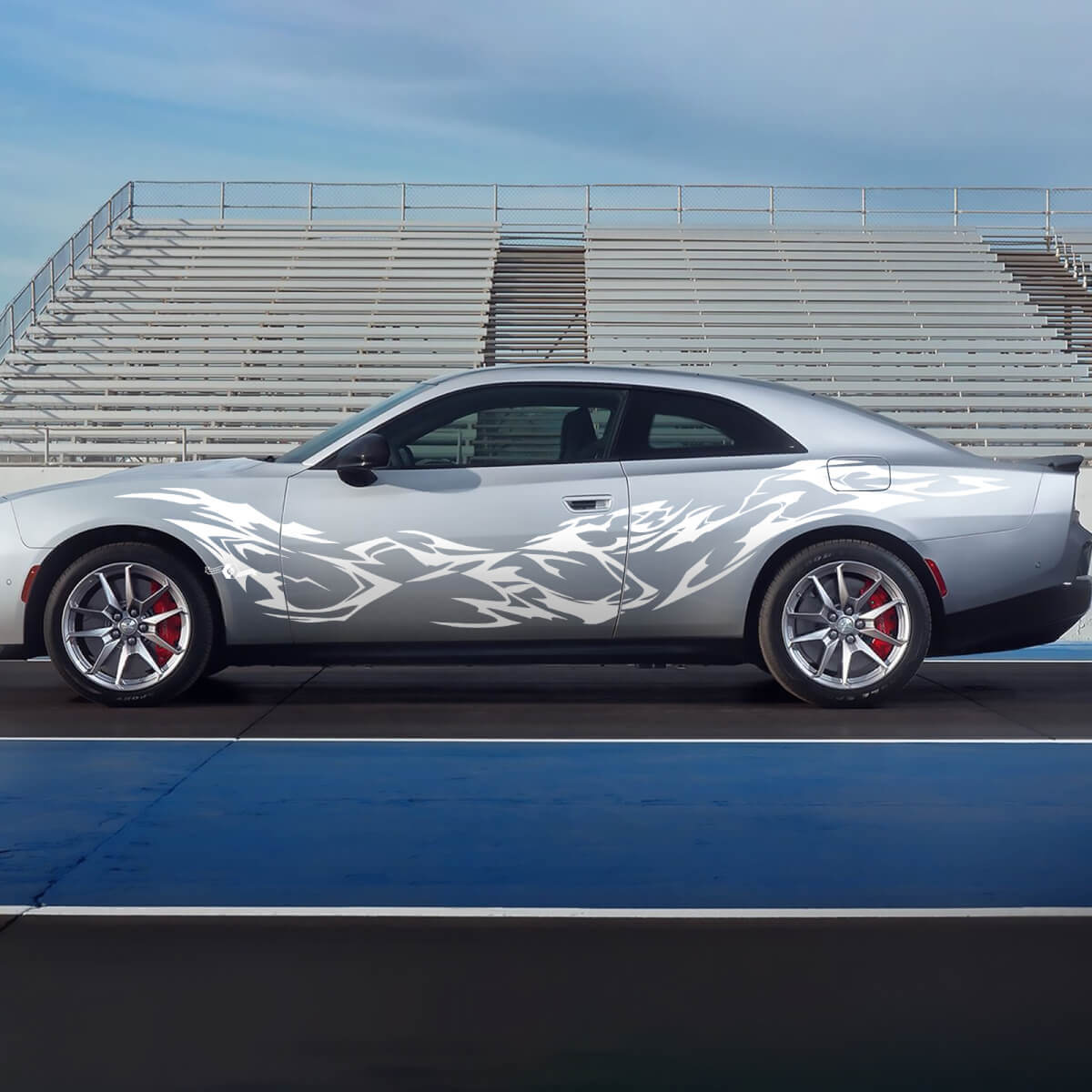 Upgrade your Dodge Charger Electric's look with our Side Tribal Vinyl Decal Stickers. Designed to add a bold and dynamic edge, these decals are made from high-quality vinyl that ensures durability and ease of application.