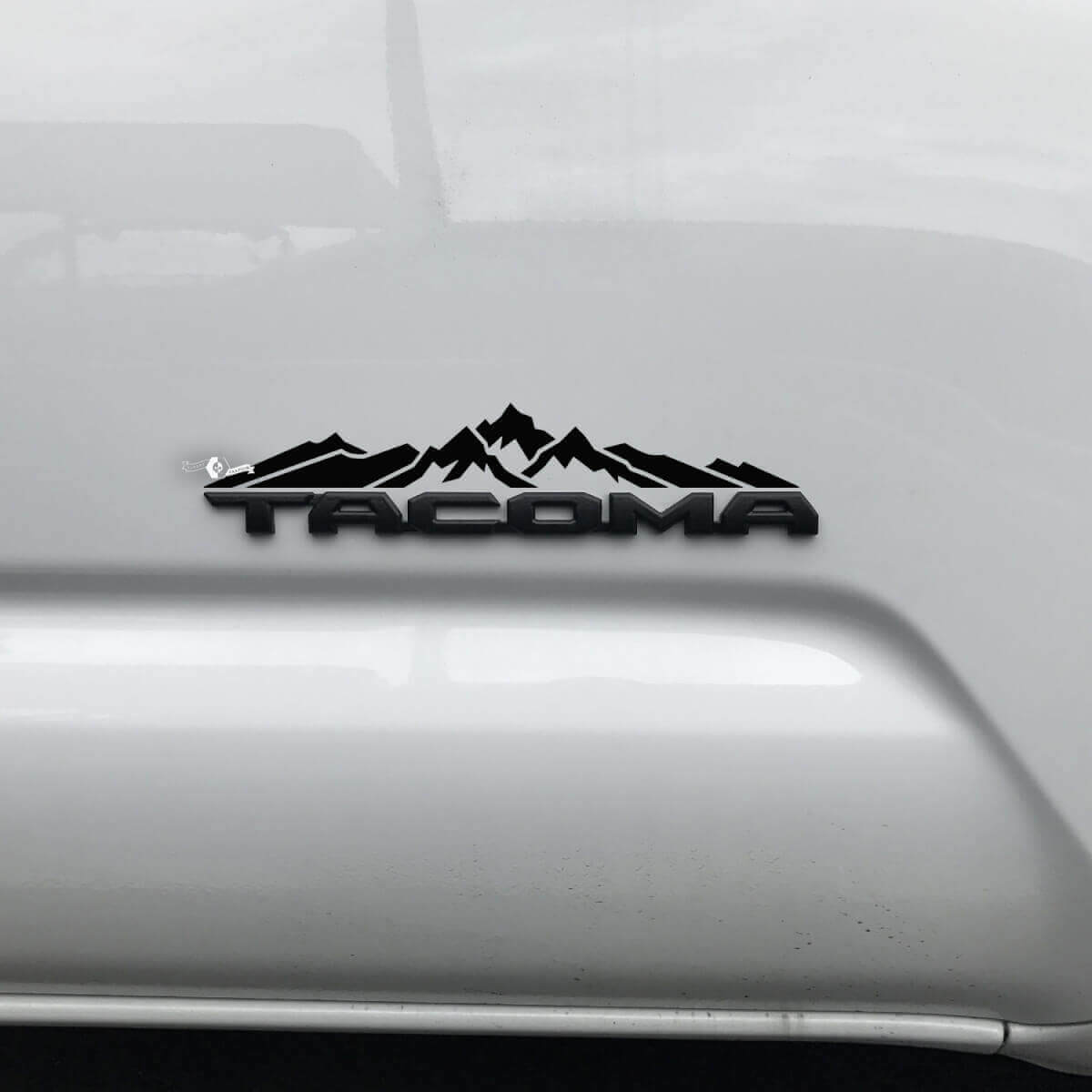 Upgrade your Toyota Tacoma's look with the Mountains Decal Sticker designed for over badge application. This high-quality vinyl decal adds a rugged, adventurous style that complements your truck's bold character.