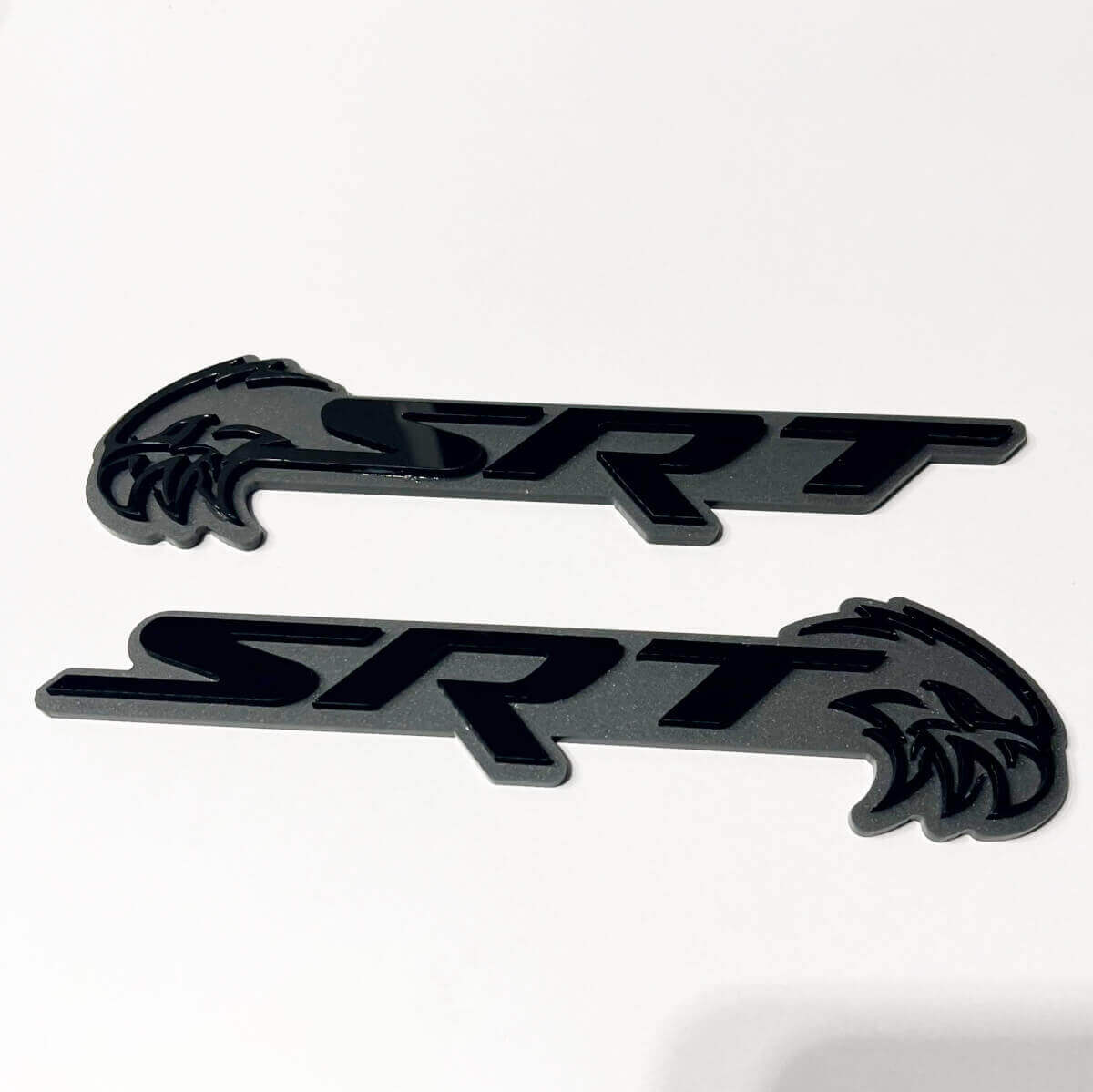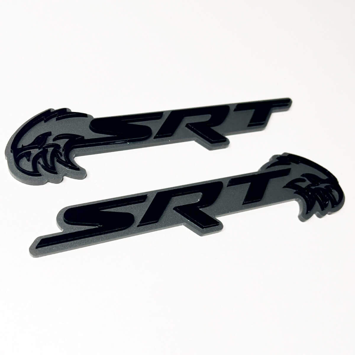 Upgrade your car’s look with the Trackhawk 3D Badge Black vs Grey Fender Badges Emblem 2 set, designed to add a sleek and aggressive touch to your vehicle’s exterior.
