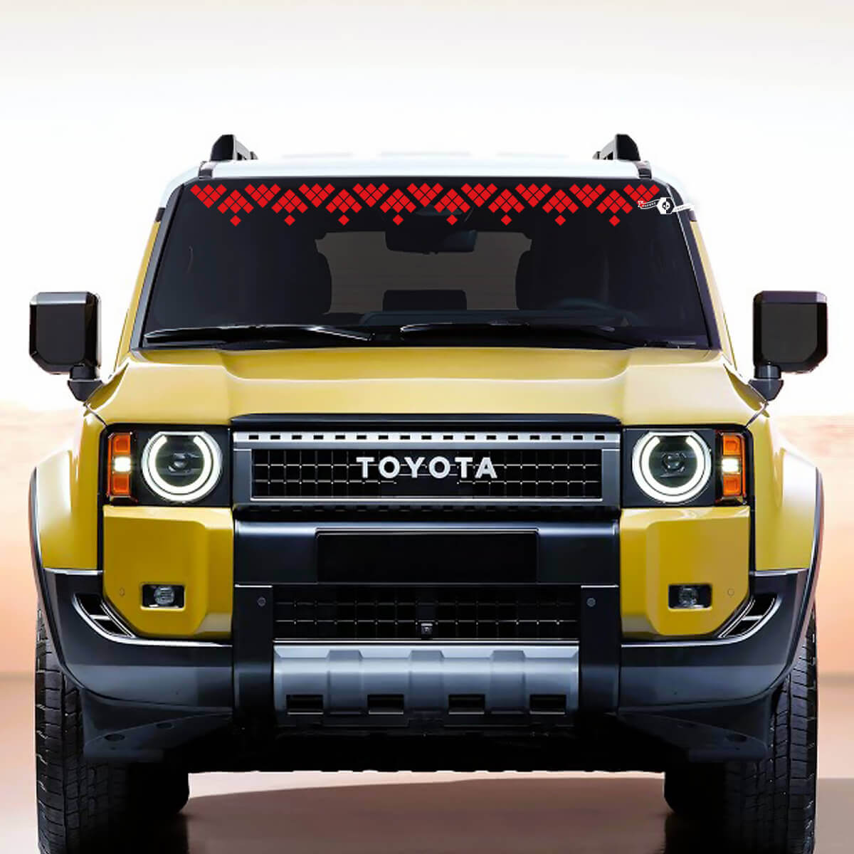 "Rugged windscreen graphics for Toyota off-road vehicles"