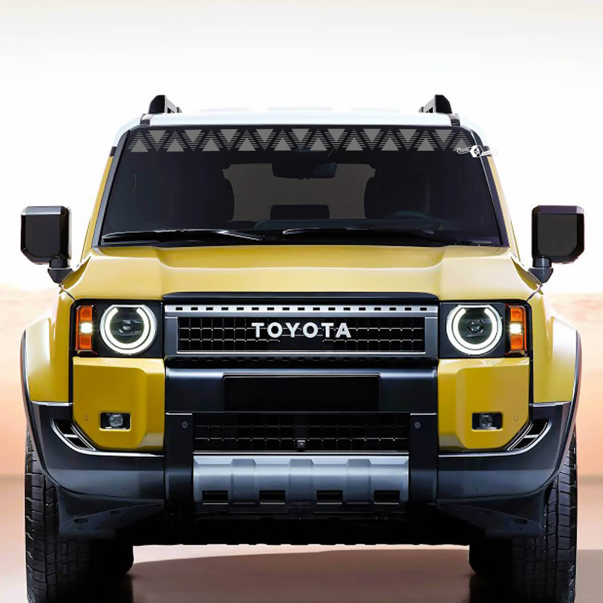 "Rugged windscreen graphics for Toyota off-road vehicles"