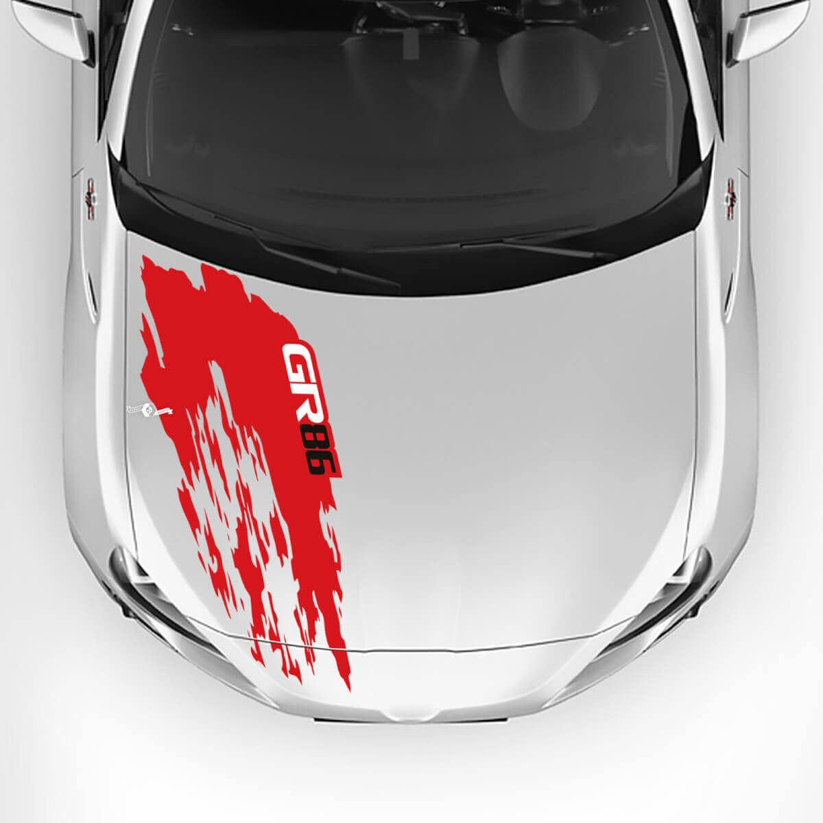 - "Custom vinyl graphics for GR86 bonnet"