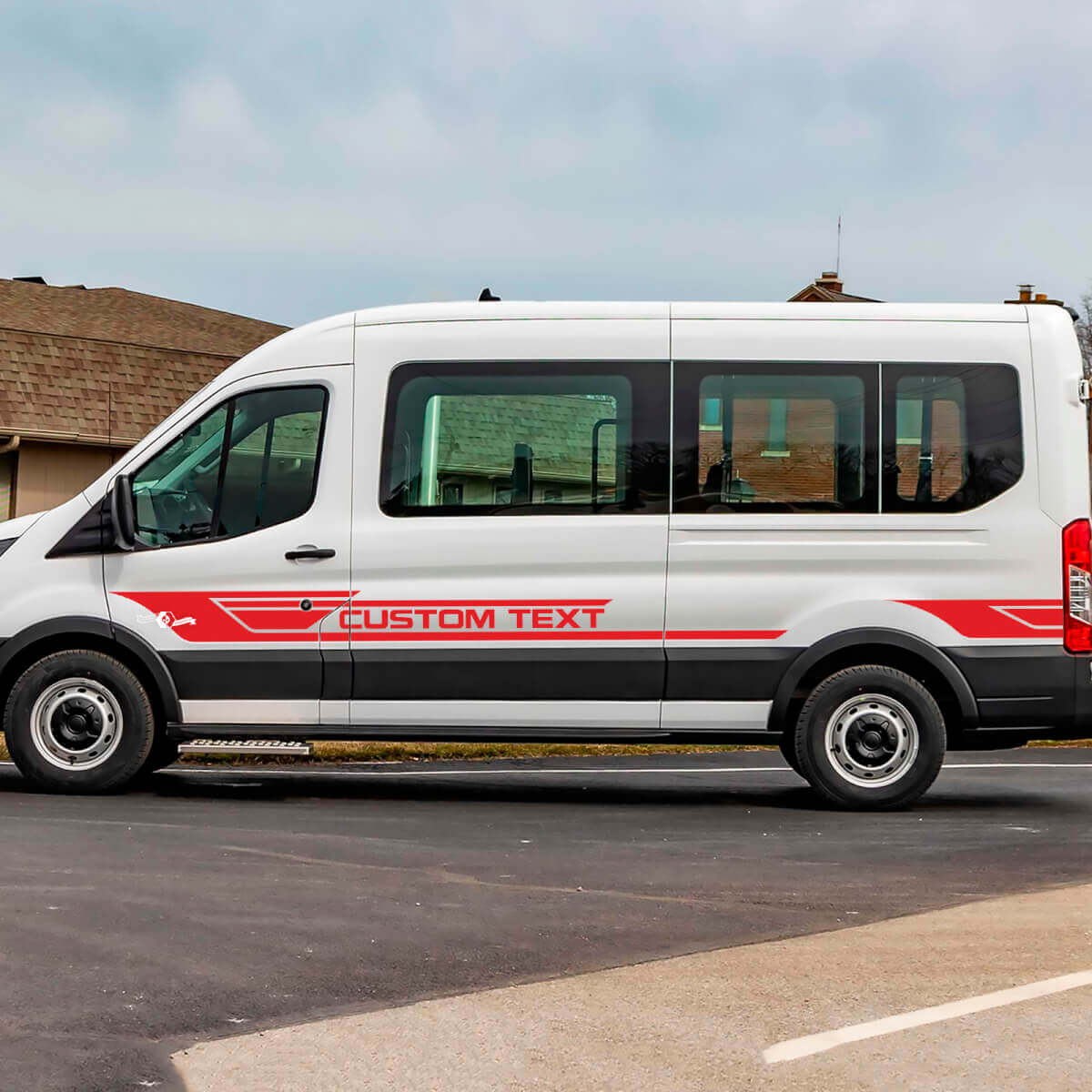 Enhance the look of your Ford Transit Custom with our premium Text Vinyl Side Stripes Decals. Designed to fit perfectly along the vehicle's sides, these decals offer a sleek, custom appearance that stands out on the road.