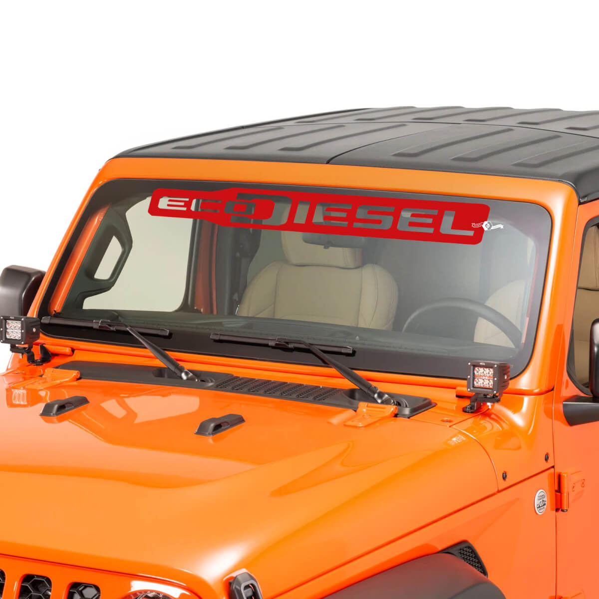 Show your EcoDiesel pride with this bold Windshield Vinyl Decal designed for Jeep vehicles. Featuring clean, aggressive graphics, this decal sits perfectly across the top of your windshield — giving your Jeep a distinctive off-road or diesel-enthusiast identity.