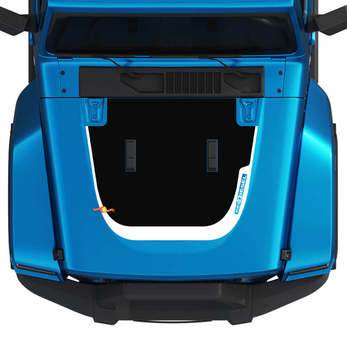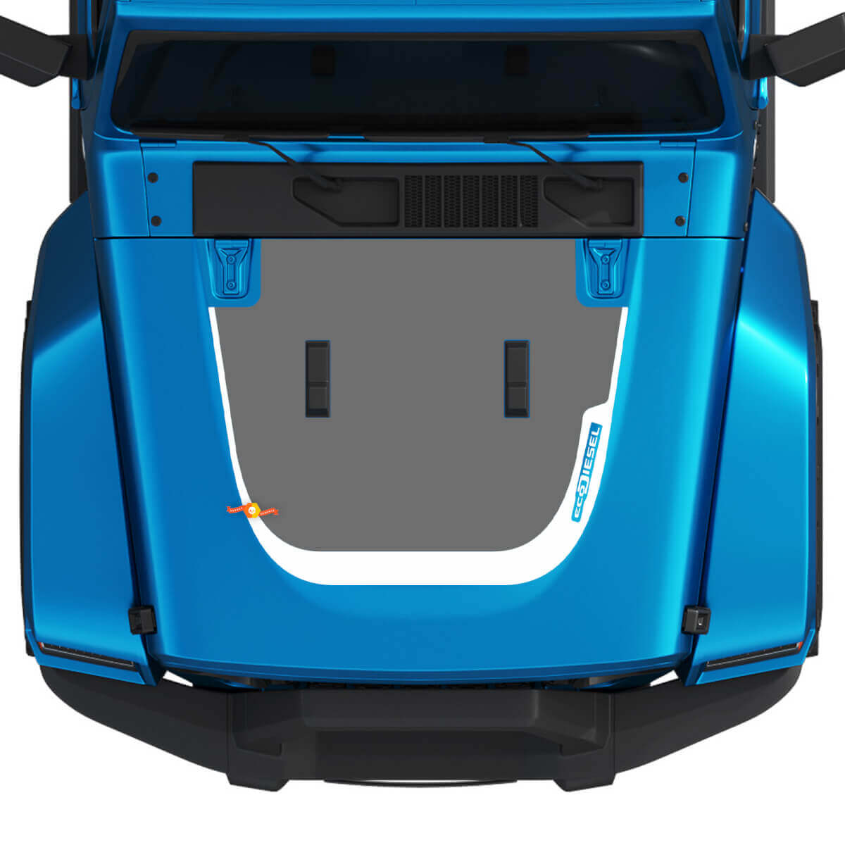 Enhance your Jeep Wrangler's style with the EcoDiesel Hood Graphic Vinyl Decal. This high-quality vinyl sticker is designed specifically for Jeep Wranglers, combining durability with a sleek look.