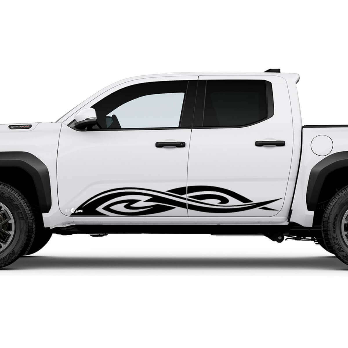 Upgrade your Toyota Tacoma's look with these striking Tribal Side Rocker Panel Decals. Designed to fit perfectly, these vinyl stickers add a bold, custom style that stands out on any road.