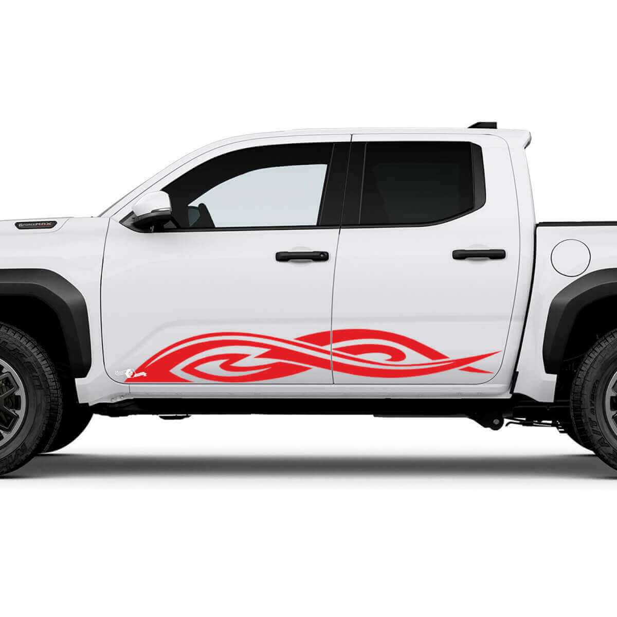 Make your Tacoma stand out from the crowd with these eye-catching tribal side rocker panel decals. The intricate tribal design adds a touch of personality to your vehicle and sets it apart from the rest. Whether you're cruising around town or hitting the trails, these decals are sure to make a statement.