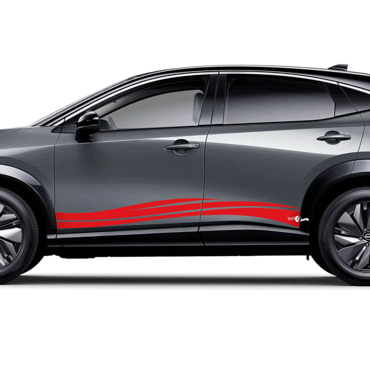 Enhance your Nissan ARIYA with the Sides Universal Wave Graphics Decal Kit. Designed for a perfect fit, this vinyl decal set adds a sleek, modern wave pattern that complements your vehicle’s style.