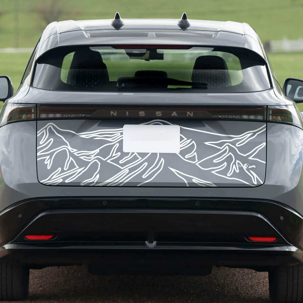 Upgrade your Nissan ARIYA 2 with our Rear Mountains Racing Graphics Decal, designed to add a bold, adventurous vibe to your vehicle.