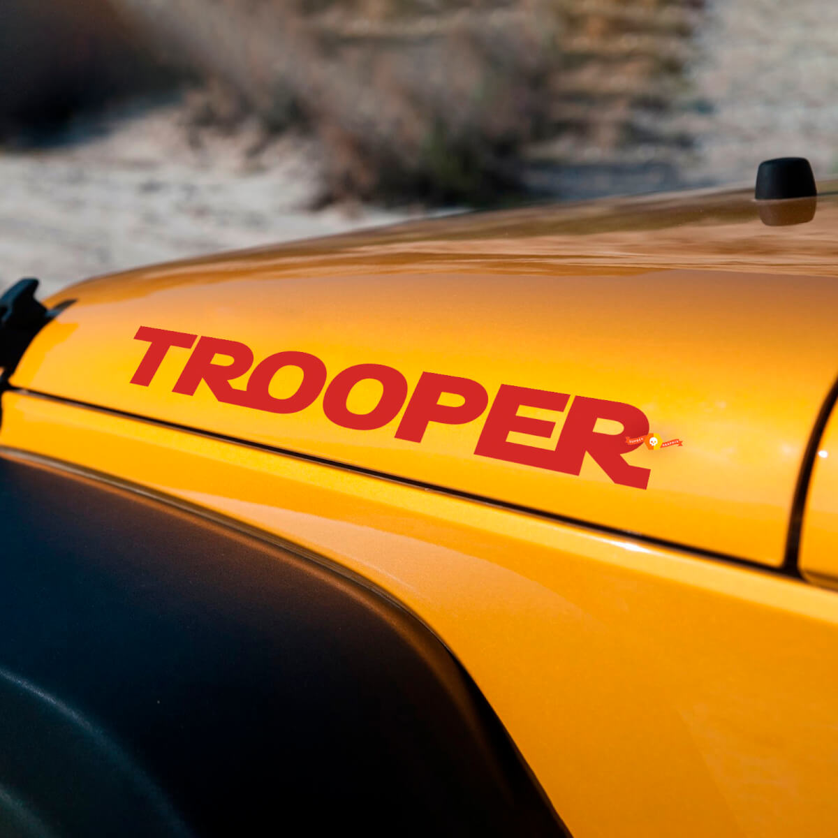 Upgrade your Jeep Wrangler with the Trooper Hood Decal Sticker and make a statement on the road. Order now and enjoy worldwide shipping to the USA, Canada, and Europe!