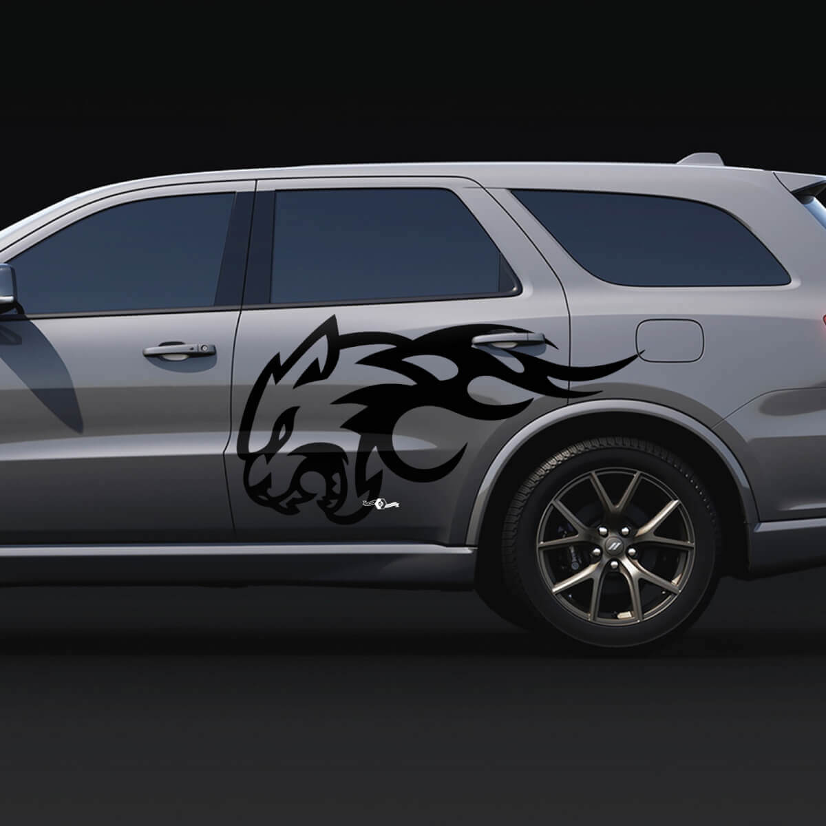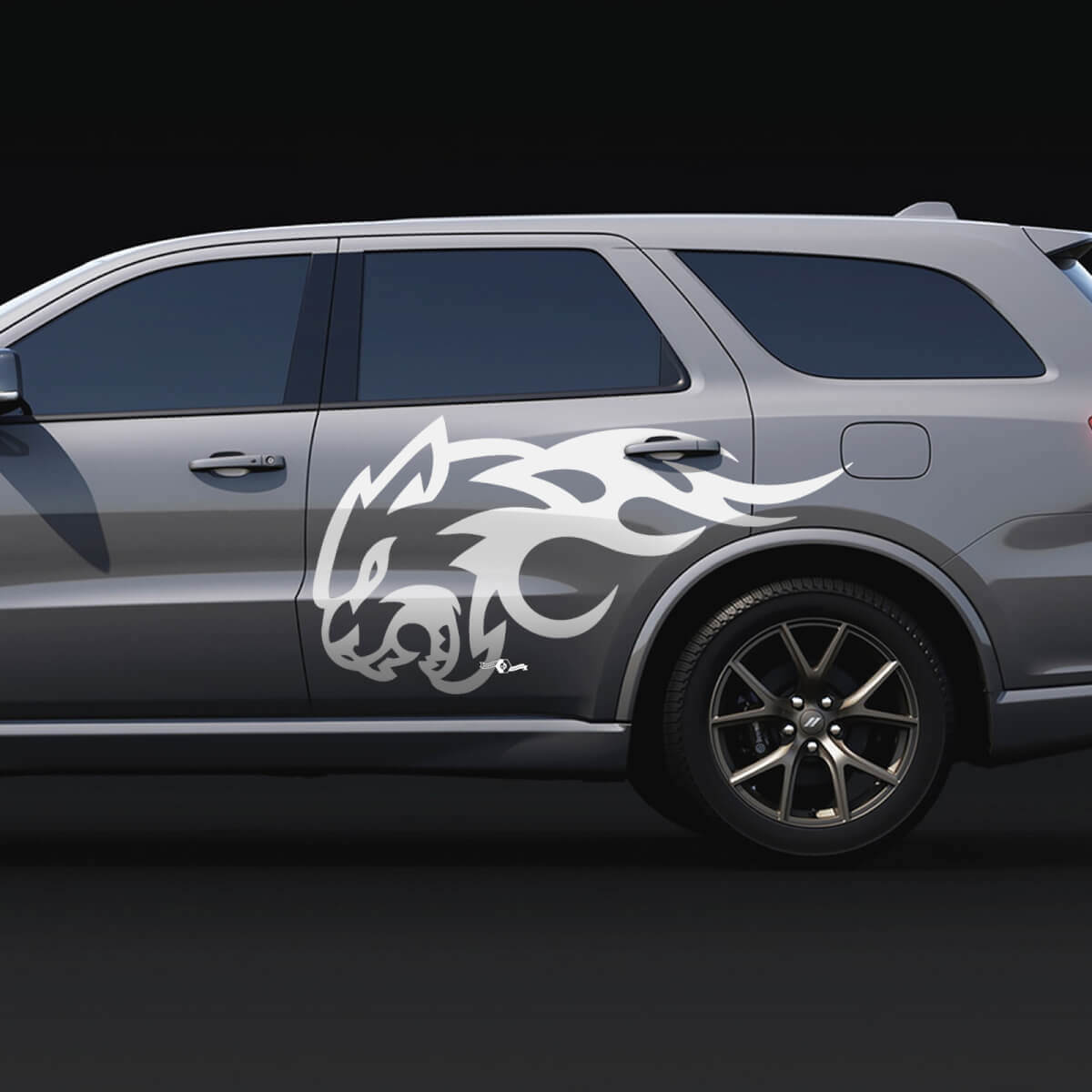 Enhance your Dodge Durango's look with the Wildcat Flame Side Decal vinyl stickers. Designed specifically to add a fierce, bold touch, these decals are made from high-quality vinyl that ensures durability and easy application.
