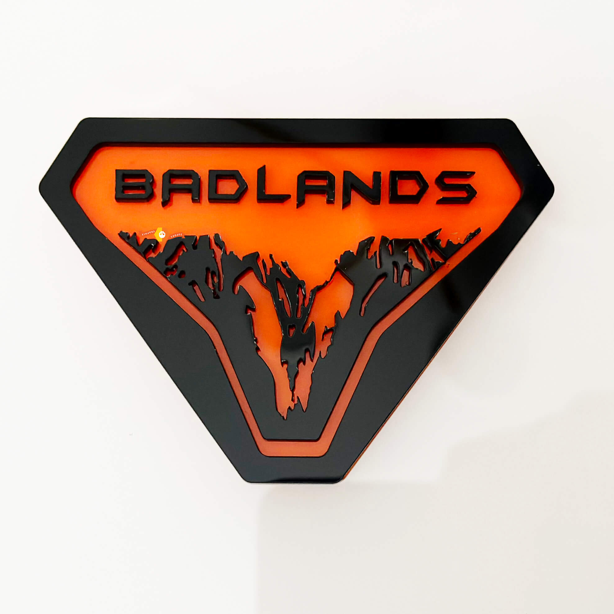 Available with worldwide shipping to the USA, Canada, Europe, and beyond, this emblem is a great way to personalise your vehicle while celebrating the beauty of the badlands. Get yours today and make a bold statement on the road!