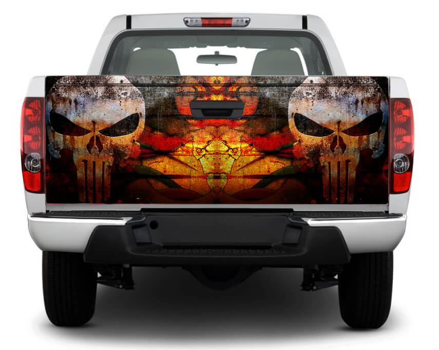 Enhance your pick-up truck or SUV with our Skull Death Tailgate Decal Sticker Wrap. This bold, high-quality vinyl decal adds a fierce, custom look to your vehicle’s tailgate, making it stand out on the road.