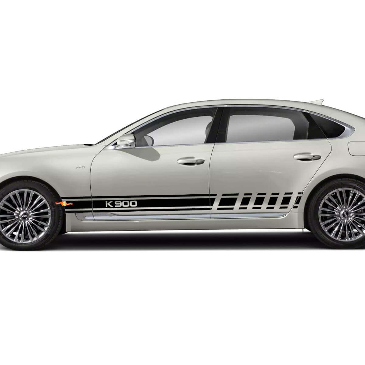 Enhance your Kia K900 with our Side Racing Stripes Vinyl Decal Sticker designed for a perfect fit and sleek appearance. Made from high-quality vinyl, this decal provides a bold racing look that withstands weather and washing.