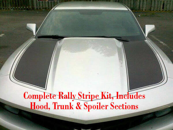 The 2010 Chevrolet Camaro Outer Hood Style Rally Stripe Kit is a great way to transform your car with two wide stripes that are installed along the edges of the bonnet. These giant stripes allow you to create a truly unique design for your Camaro, adding a sporty and aggressive look to it.