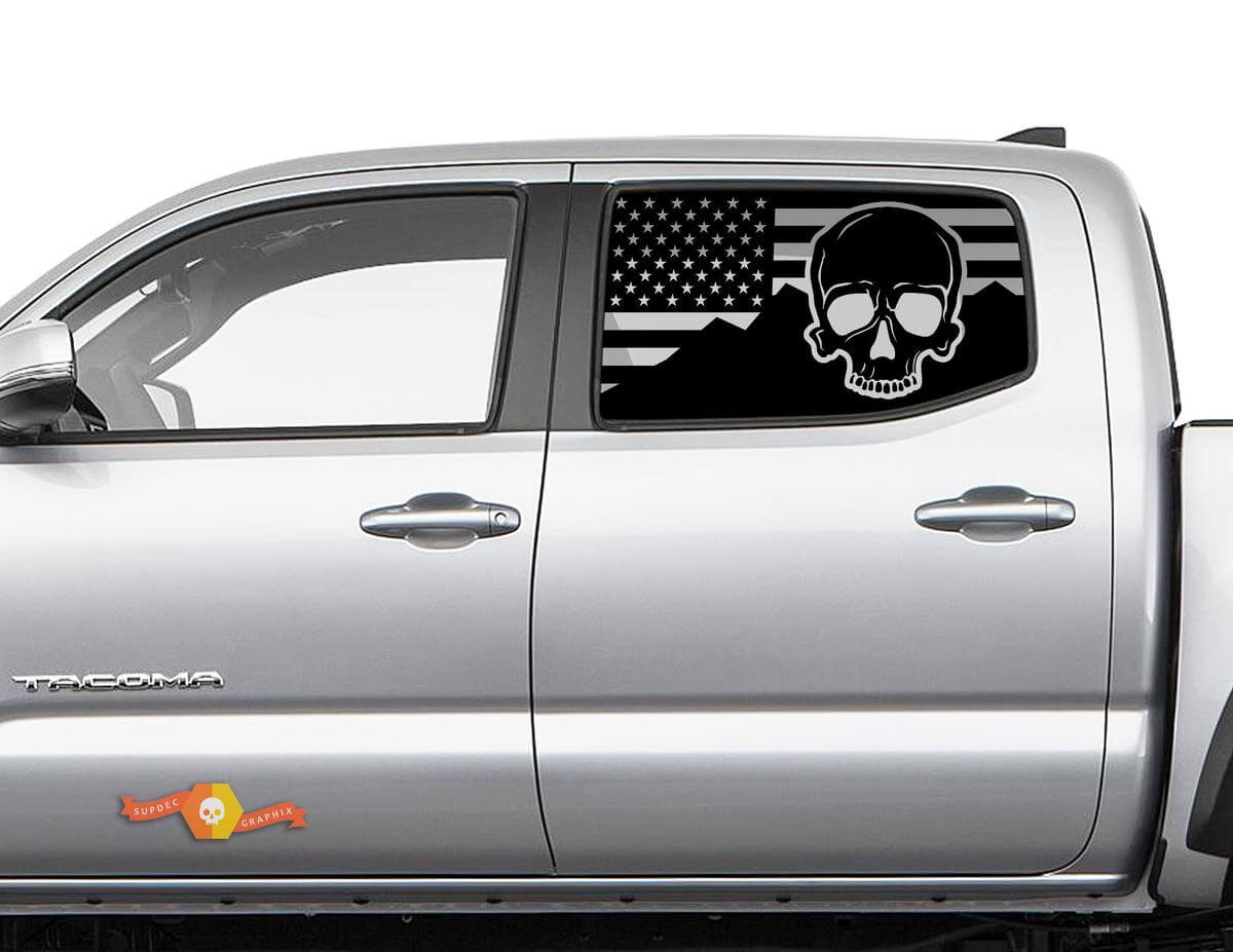 Toyota Tacoma 4Runner Tundra Hardtop USA Flag Mountains Skull Windshield Sticker Decal JKU JLU 2007-2019 or Dodge Challenger Charger Suba Ascent Forester Wrangler Rubicon - 152